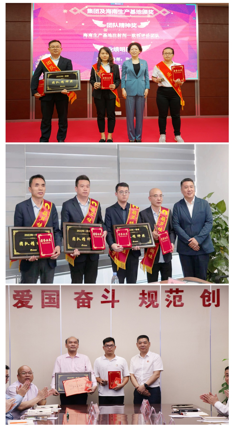 为了表彰在2022年一季度“深化变革,赢得开门红”工作中“超额完成计划、超出本职工作或超越组织预期”的先进集体和优秀个人,会议期间还举行了东升国际药业集团2022年一季度“开门红”表彰颁奖仪式。营销中心葫芦世家事业部湖南区域主管黄子杰等12人荣获业绩明星奖,葫芦世家事业部等5个集体荣获团队精神奖。